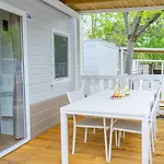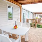 Вилла Happy Camp Mobile Homes In Camping Bella Italia с террасой, где есть мини-кухня, расположена в 2 км от центра Пескьеры-дель-Гарда. В комнатах предоставляется диван, рабочий стол и зона отдыха, а на мини-кухне - полноразмерный холодильник, плита и кухонная утварь.